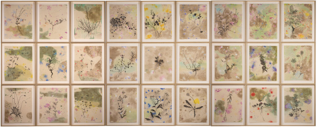 Wild leaves, 2025 – 142 x 112 cm – Graphite, aquarelle et pyrogravure sur papierFeuille de cerisier sauvage, 2025 – 24 x 18 cm – Graphite, aquarelle et pyrogravure sur papierChardons I, 2024 – 67 x 52 cm – Graphite, pierre noire, aquarelle et pyrogravure sur papierHerbier pour Rosa, 2024 – 130 x 324 cm – Graphite, pierre noire, aquarelle et pyrogravure sur papierHerbier pour Rosa – détail, 2024 – Graphite, aquarelle et pyrogravure sur papierHerbier pour Rosa – détail, 2024 – Graphite, aquarelle et pyrogravure sur papierHerbier pour Rosa – détail, 2024 – Graphite, aquarelle et pyrogravure sur papierChamp de carottes sauvages I, 2023 – 56 x 71 cm – Graphite, encres pigmentaires et pyrogravure sur papierPlatane d’Orient, 2023 – 112 x 71 cm – Graphite et pyrogravure sur papierPistachier Lentisque, 2023 – 112 x 71 cm – Graphite et pyrogravure sur papier